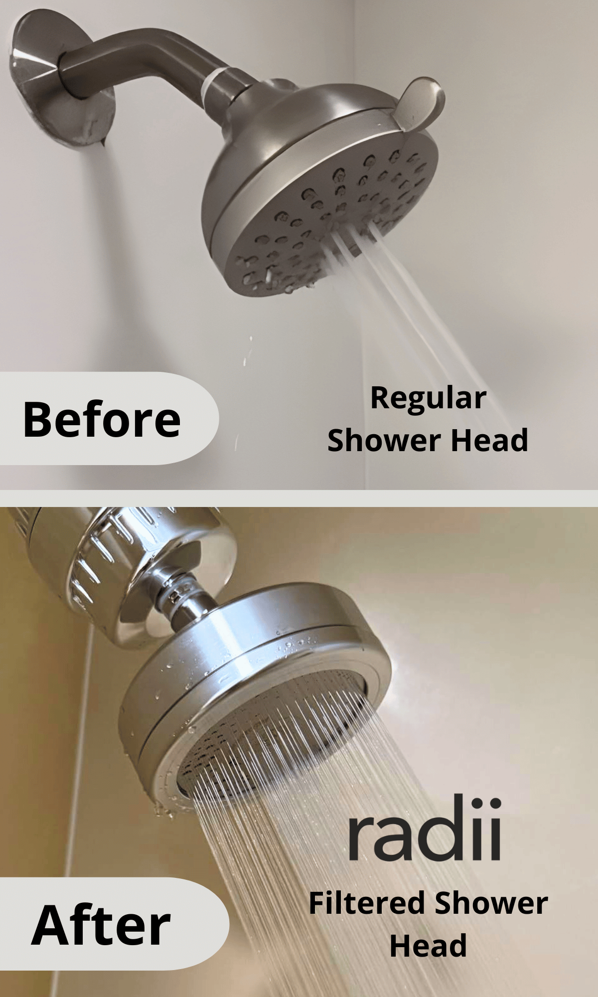 Your Shower Should Leave Your Skin and Hair Feeling Good — Not Stressed. When water contains impurities like chlorine, it can leave skin feeling tight and hair feeling flat — even after using great products. Radii helps reduce those impurities and infuses the water with vitamins A, C & E, creating a cleaner, softer-feeling shower experience. Better-feeling skin. Better-feeling hair. Just by changing the water.